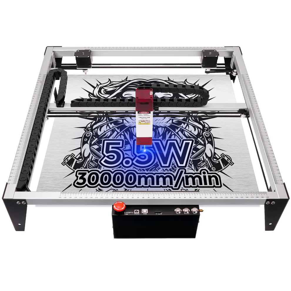 A estrutura rígida em alumínio proporciona estabilidade durante o corte, reduz vibração e melhora a qualidade do acabamento. Compatível com LightBurn e LaserGRBL, permitindo importar arquivos vetoriais com facilidade.