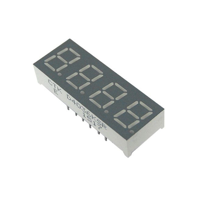 Display de 7 Segmentos com 4 dígitos de catodo comum, com fundo cinza e LED que acende na cor vermelha.