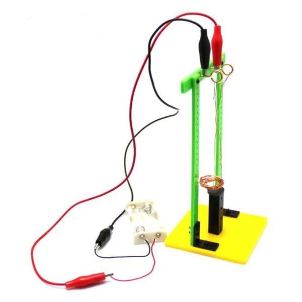 Com este kit é possível demonstrar o efeito da lei de Faraday da indução de força magnetomotriz. Através de duas pilhas AA (não inclusas) devidamente conectadas a uma bobina de cobre posicionada sobre um ímã natural permanente verificamos que a circulação de corrente elétrica através da bobina ao atravessar o campo magnético gerado pelo ímã produz uma força cinética mutuamente perpendicular ao sentido de ambos (o campo magnético e a corrente).