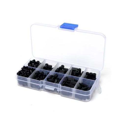 O Kit Espaçadores de Nylon M3 - 300 Unidades é um conjunto completo destinado especialmente para aplicação nos mais variados ramos em conjunto com porcas e parafusos para fixação de determinados circuitos, placas, suportes e demais acessórios em geral.