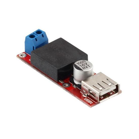 O Módulo Conversor DC KIS3R33S com USB trabalha com tensões de entrada de 7V a 24V, oferecendo em sua porta USB fêmea tensão regulada de 5V e corrente máxima de 3A.