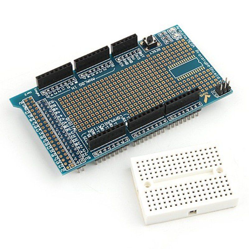 O Proto Shield com Mini Protoboard para Arduino Mega é ideal para processos de prototipagem com placas Arduino pois foi projetado de forma a encaixar-se perfeitamente sobre a placa Arduino Mega, fornecendo ao usuário uma área livre de trabalho com 1 led de uso geral, 1 botão e todos os pinos do Arduino de forma a facilitar a interação dos mesmos com seu protótipo.
